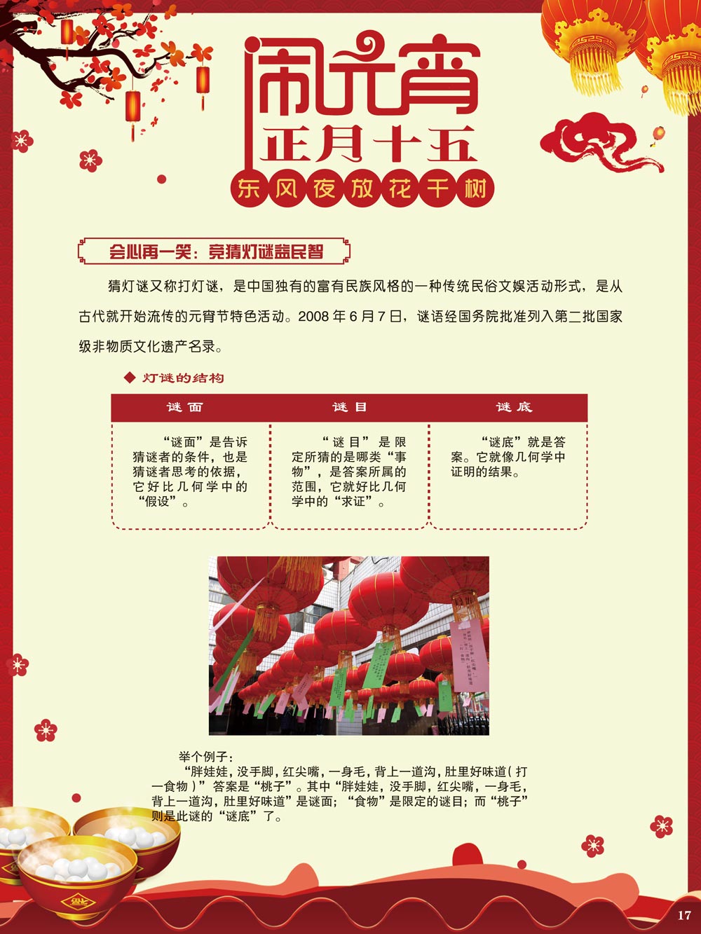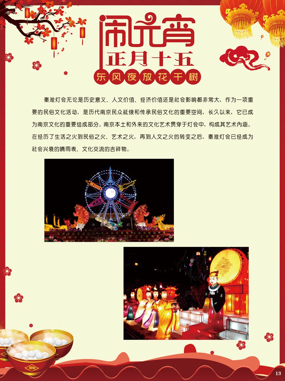 《东风夜放花千树——正月十五闹元宵》主题展览分为五个单元:“源远流长 瑰丽传说”“追星揽月 向往圆美”“灯火辉煌 乐中斗智”“龙腾狮跃 共庆新春”“诗意融融 岁月如歌”。策展团队特别策划了首批国家级非物质文化遗产——秦淮灯会、趣味猜灯谜画谜、非遗项目——晓云绣花龙、软萌创意汤圆展示四大板块,致力于为观众呈现一个充满年味、欢天喜地的元宵佳节,欢迎社会各界朋友前来观展!