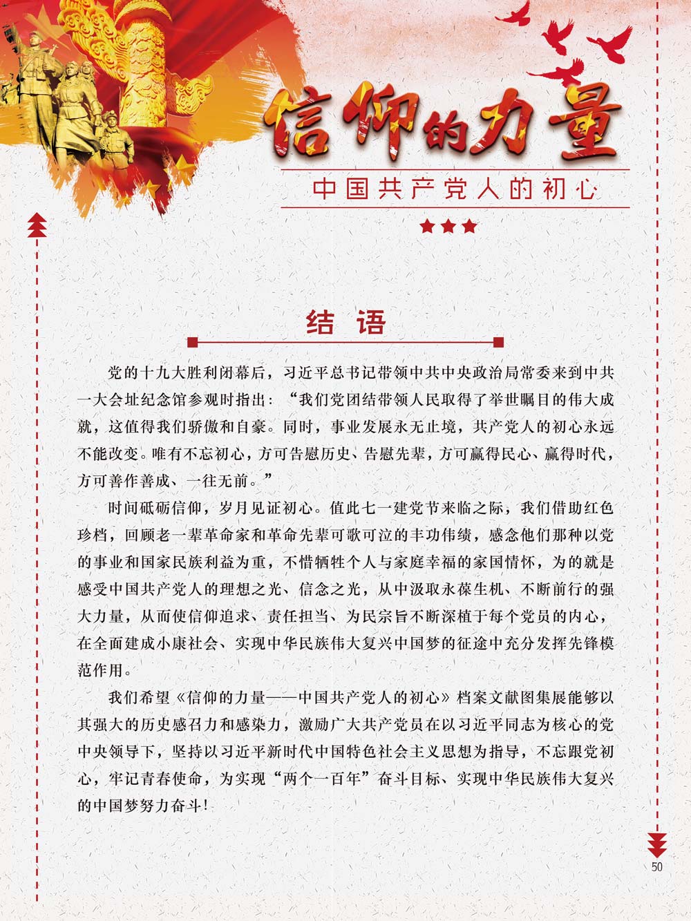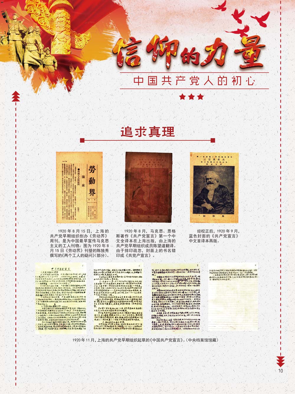 太阳升起,光明普照。2019 年7 月1 日,我们迎来了中国共产党的98 岁诞辰,为隆重纪念党的98 岁华诞,特举办此次展览。展览以中央档案馆和上海市档案馆馆藏红色珍档为主体,以老一辈无产阶级革命家和革命先辈追求与坚守马克思主义信仰为主线,通过“追求真理”“坚定信念”“严守党纪”“勤政为民”“修身齐家”五个部分,集中展示中国共产党人对理想信念的执着追求和无畏奋斗、无私奉献、无悔牺牲的赤子之心与家国情怀。 历史是最好的教科书,中国革命历史是最好的营养剂。历史的足音穿越时空、 启示未来,必将激励一代又一代中国共产党人初心如磐,自觉做共产主义远大理想和中国特色社会主义共同理想的坚定信仰者和忠实实践者。 信端全景展:http://ls.kanzhanlan.cn/wx/010106/41/index.html