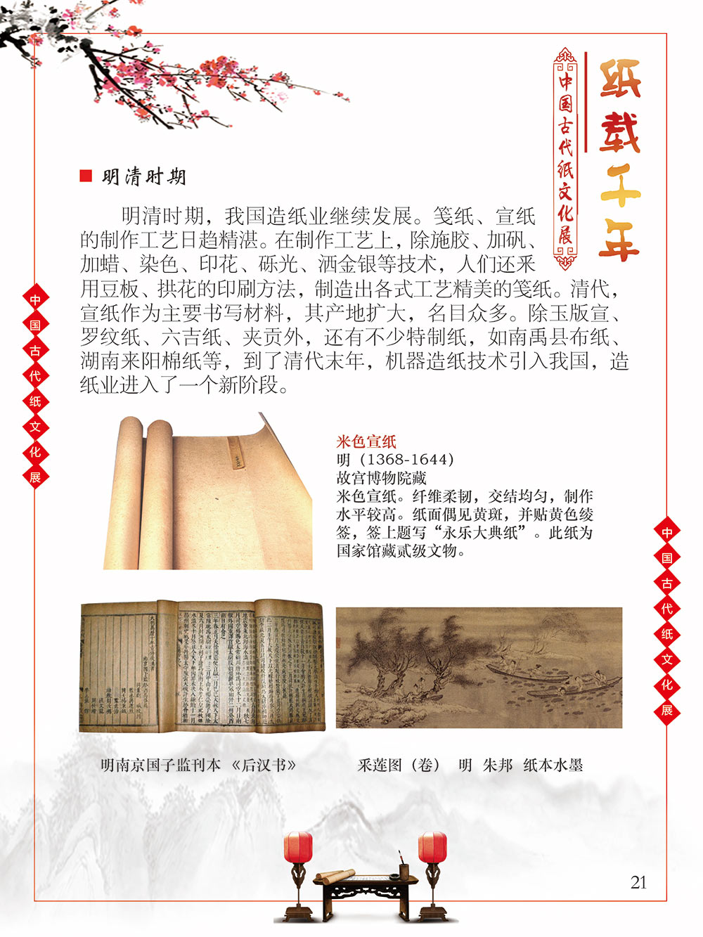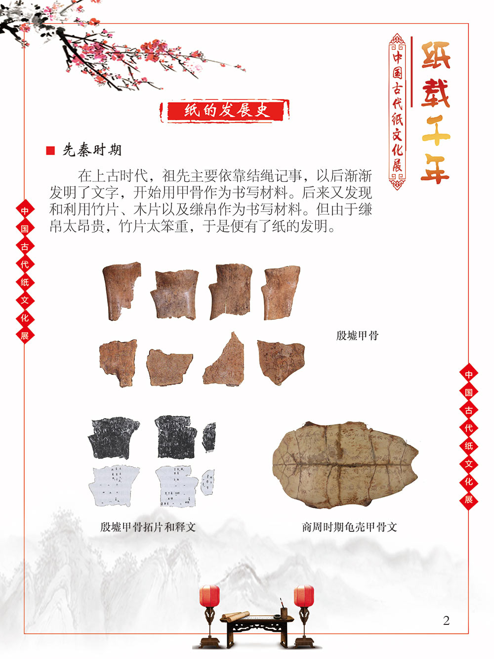 自人类文明于混沌中逐渐产生意识的曙光之初,繁衍生息于广袤世界每一隅的人们发现,语言、文字、记忆很难穿越时空枷锁得以保留,所以哪怕茹毛饮血、食不果腹,却愿意耗费为数不多的资源,力所能及地将自己的生活进行分享和记录。曾几何时,壁画、绳结、龟甲、竹简、羊皮纸……受限于介质本身,人类只能坚韧晦涩地用这些低效率的方式传播文化、传承文明。 人类史的时间轴上,纸出现的比较晚,但并不影响其重要的地位,纸的发明彻底颠覆了人类知识的传播和延续。没有纸之前,西汉东方朔用3000根竹简写奏章,汉武帝花两个月时间才能看完;“学富五车”的故事也源自于古人用车装竹简。人类文明的高速演进得益于以纸为介质的文化知识的广泛传播。 对古人而言,纸是怡情悦性的工具,是针砭时弊的载体,是离愁别绪的倾诉,是不遇之情的寄托。而对绝大多数的中国人而言,纸,是中国文化和历史之精华的浓缩,提及纸,就会让人联想到书写于纸上的辉煌历史,那源远流长的灿烂文化,更有那一幅幅酣畅淋漓的书法、惟妙惟肖的绘画闪过我们的眼前。 本展览旨在通过纸文化所展开来的历史文化与艺术图卷,帮助我们了解伟大祖国灿烂的文化和悠久的历史。