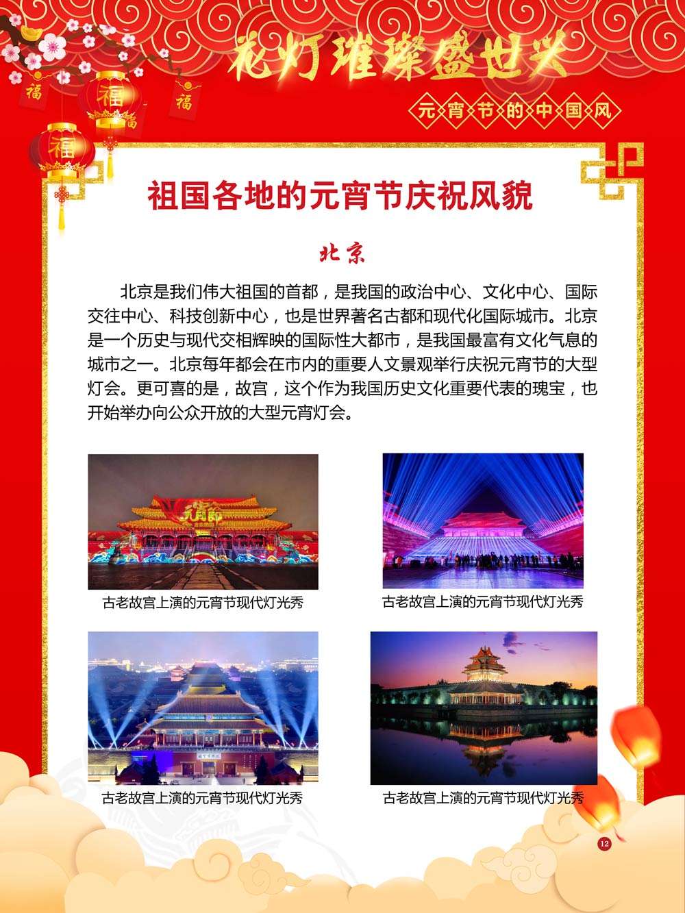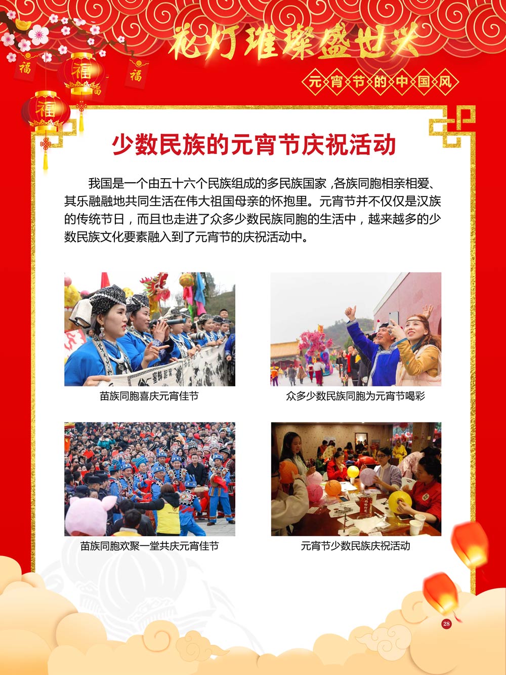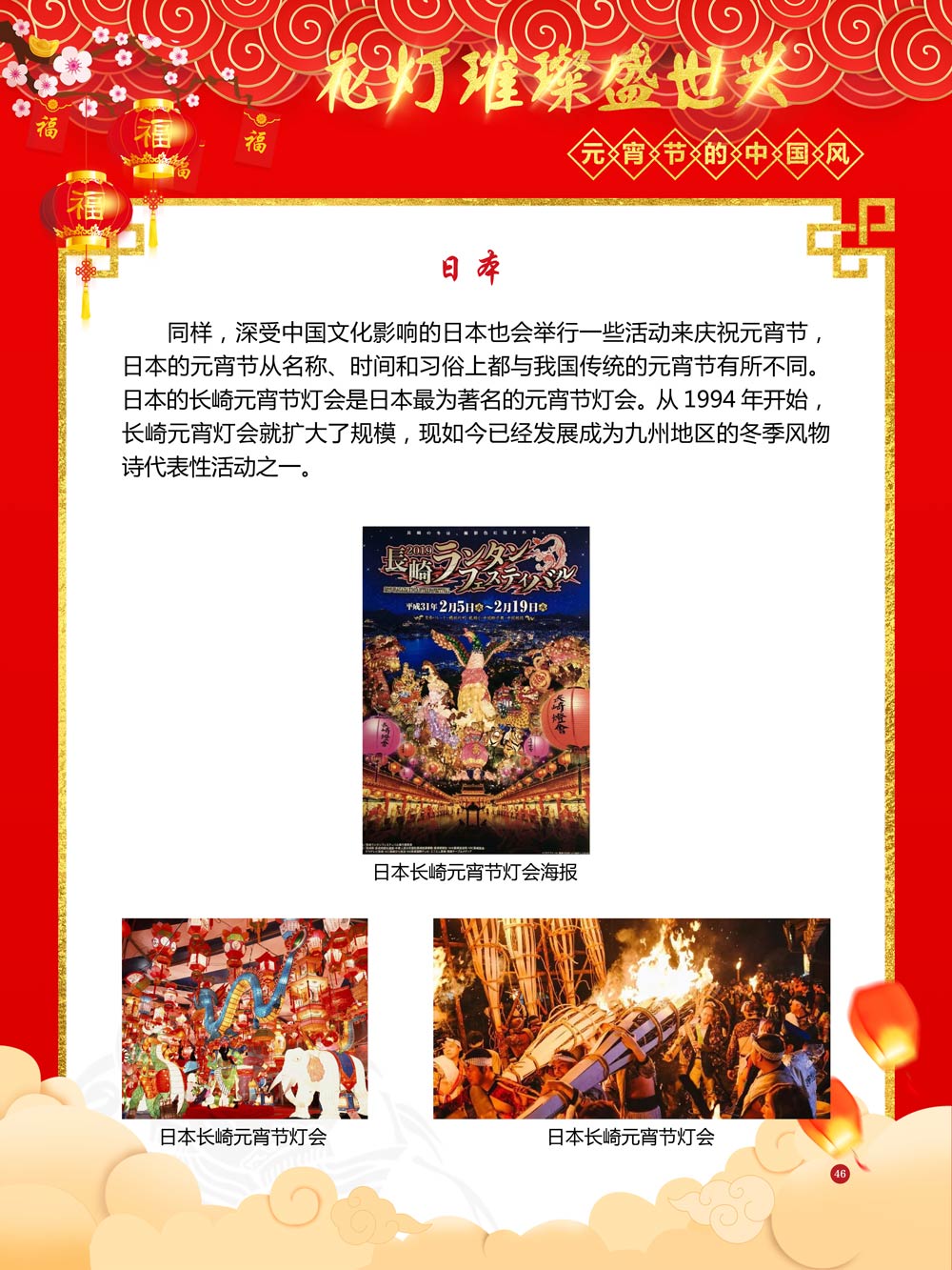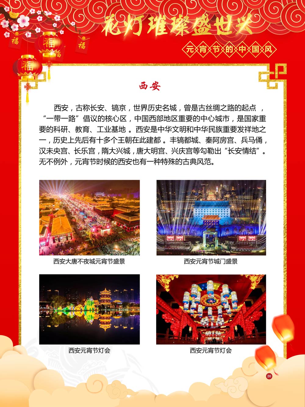 过完春节过十五,正月十五闹元宵!一年一度的元宵节又要喜气洋洋的登场了!值此佳节来临之际,我们首先给大家拜一个晚年,同时祝愿大家元宵节快乐!元宵节的历史源远流长,形成了其富有特色的节日风情,是中华民族的重要传统节日之一。 随着全球化时代到来后,全世界的各大文明形态和多种多样的文化迎来了有史以来最大的深度融合。中华传统文化也乘着文化全球化的快车,通过遍布世界各地的华侨华人传播到了世界上的每一个角落。元宵节也在此背景下,由一个中华传统节日逐渐的发展为一个具有浓重现代多元气息的世界节日。元宵节的庆祝活动也不在仅仅局限在中华文化圈内,而是逐渐地扩大到了更大的国际范围中。越来越多的世界各地居民领略到了我国元宵节独特的魅力风采,而且也在逐渐地加深理解元宵节蕴含的丰富内涵。各色皮肤和各种语言的人们越来越积极地加入到庆祝元宵节的队伍中来,丰富多彩的国外文化也随之自然融入到传统的中华元宵节文化中去。 今天,庆祝元宵佳节的活动已经在世界各地如雨后春笋般出现,元宵节已经成为了富有鲜明中国风的重要东方文化符号。我们将通过本展为广大观众朋友们呈现这一幅幅张灯结彩且充满欢声笑语的精美画卷。
