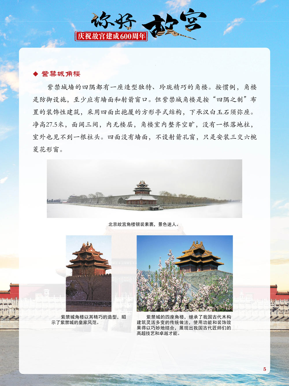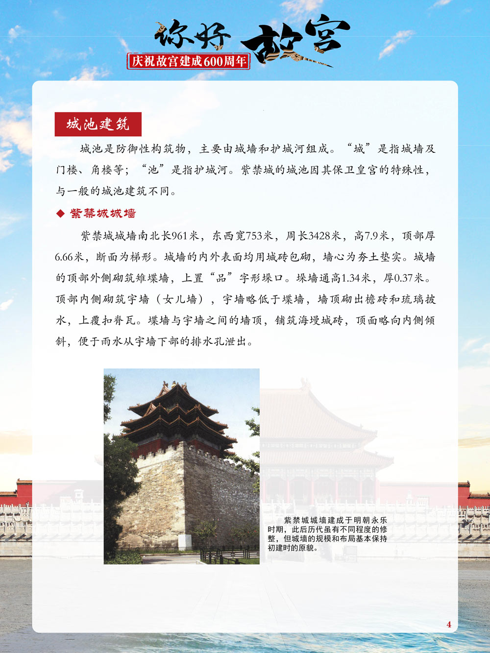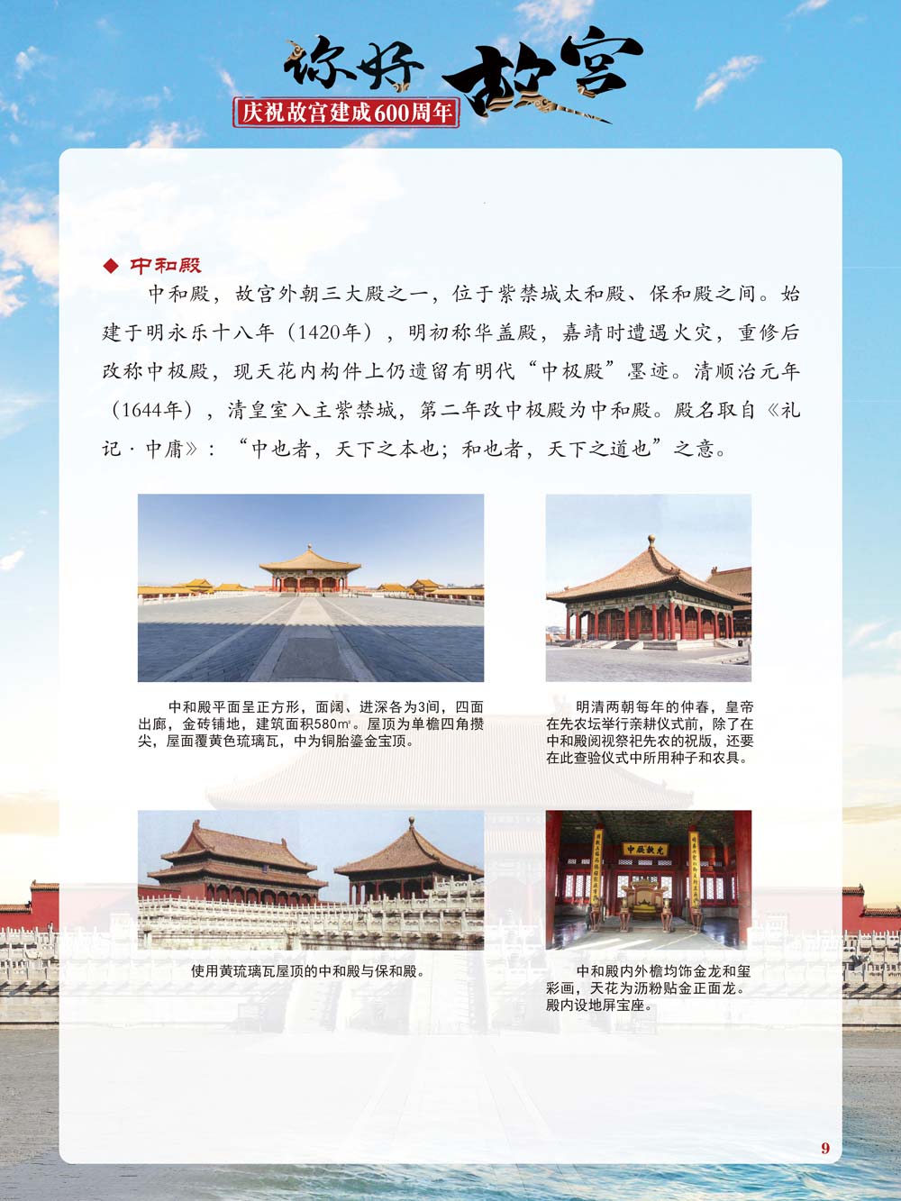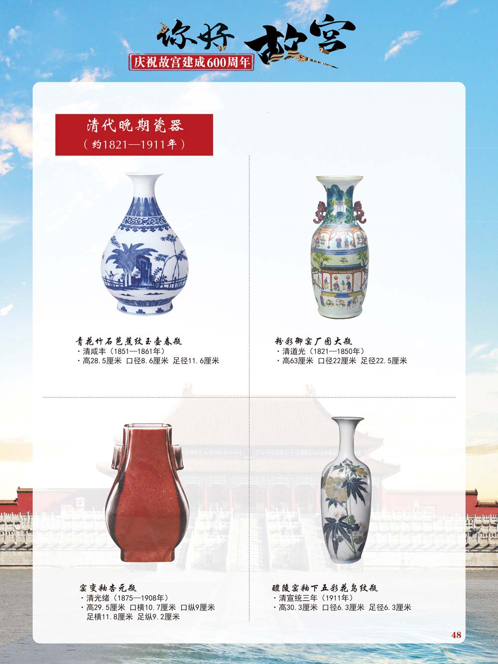 故宫是了解中国历史文化不可或缺的窗口。它其实有两个名字,一个名叫故宫博物院,90多岁了;一个名叫紫禁城,今年整整600岁了。 历史文物承载着一个民族的灿烂文明,本展览立足于故宫建成600周年,通过介绍故宫的建筑、字画、陶瓷,让观众不仅可以欣赏精美的文物,还可以在历史的氛围中徜徉传承和发扬中华优秀传统文化。故宫的每一座宫殿建筑、朱漆大门、院落桥梁、青砖黄瓦、宫廷陈设、梁枋彩画,承载着丰富的历史符号、文化内涵。书画藏品是故宫博物院艺术藏品的重中之重,阎立本《步辇图》,张择端《清明上河图》,王羲之、欧阳询等名家书法成为故宫镇院之宝。陶瓷,是文明的象征,每件作品背后的文化因素,让造型、釉色和装饰纹样呈现出丰富多元的面貌。陶瓷吸引人之处,在于它们呼应着源远流长的历史脉络,同时也反映出不同文化相互交流的现象。