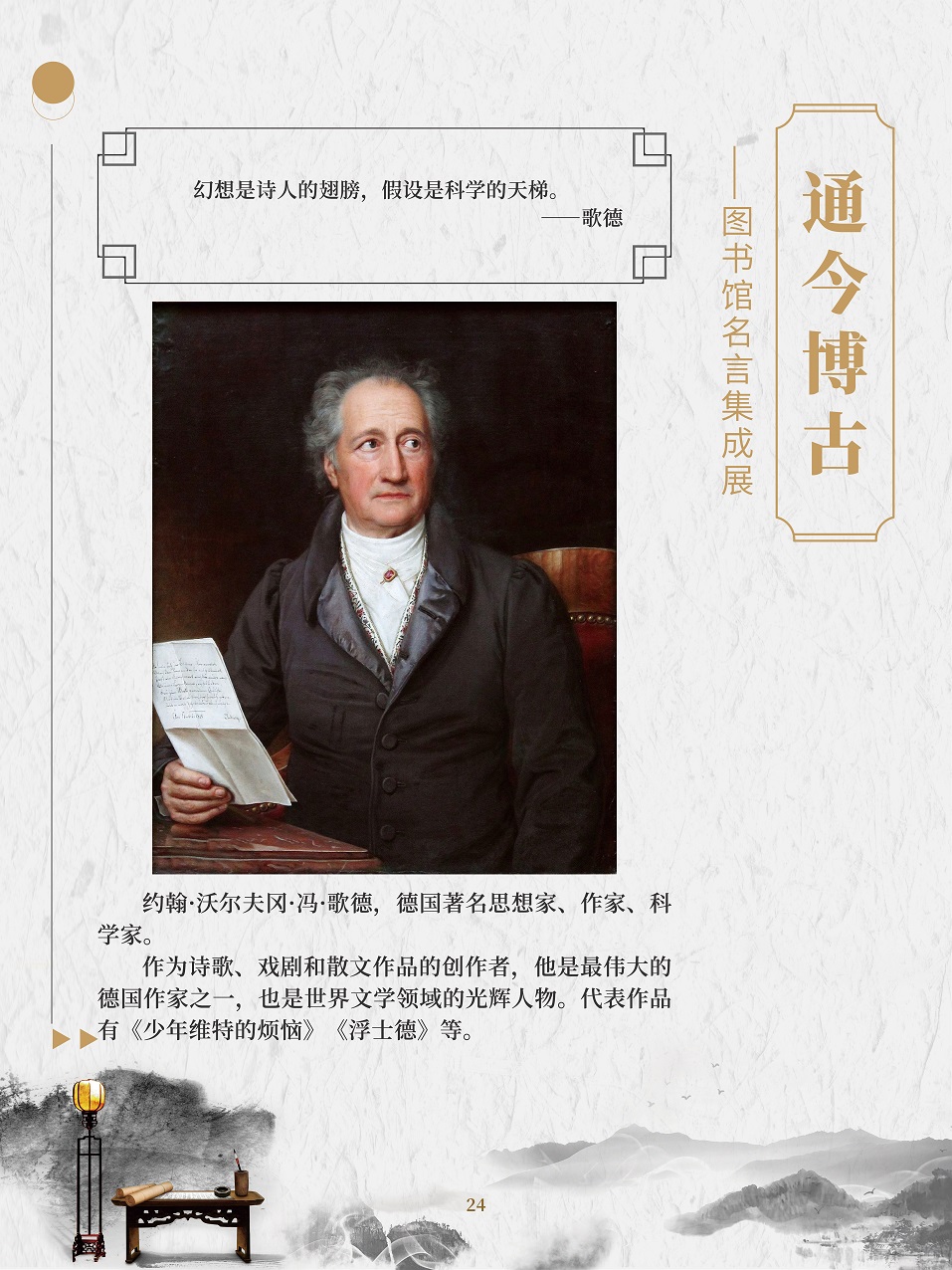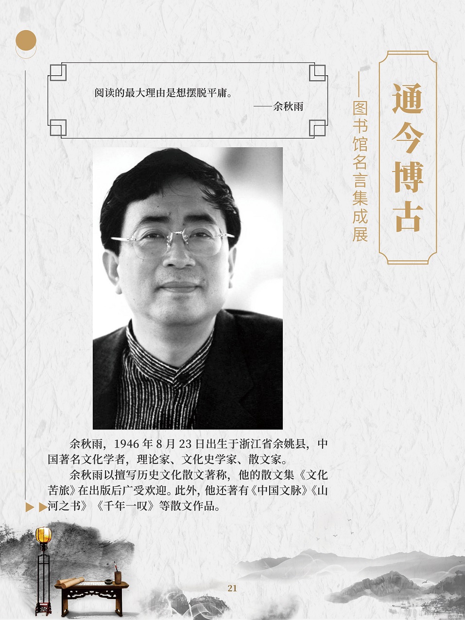 名人名言是人类思想的精华,智慧的结晶。面对书海浩瀚,语林苍茫,感悟名人名言,对于每个人来说,都是明智的选择。一句句铿锵有力的名言,就是一个个思想火花,可以点燃青春的热情,激发人们的奋斗精神;一句句闪烁着智慧光芒的名人名言,就像一座座人生的灯塔,照耀着人们前进的道路。 在2020年“4·23世界读书日”来临之际,为了倡导全民阅读,引导广大群众逐步形成爱读书、多读书、读好书的阅读习惯,特举办此展览。展览以“读书与学习”为主题的名人名言为主线,让广大观众领略古今中外名人名言的内涵和风采。 “最是书香能致远,唯有读书方宁静”,建设学习型社会应该从阅读开始。一个善于阅读的人一定会成为有前途的人,一个善于阅读的民族一定会成为有希望的民族,一个善于阅读的国家一定会成为不断发展壮大的国家!
