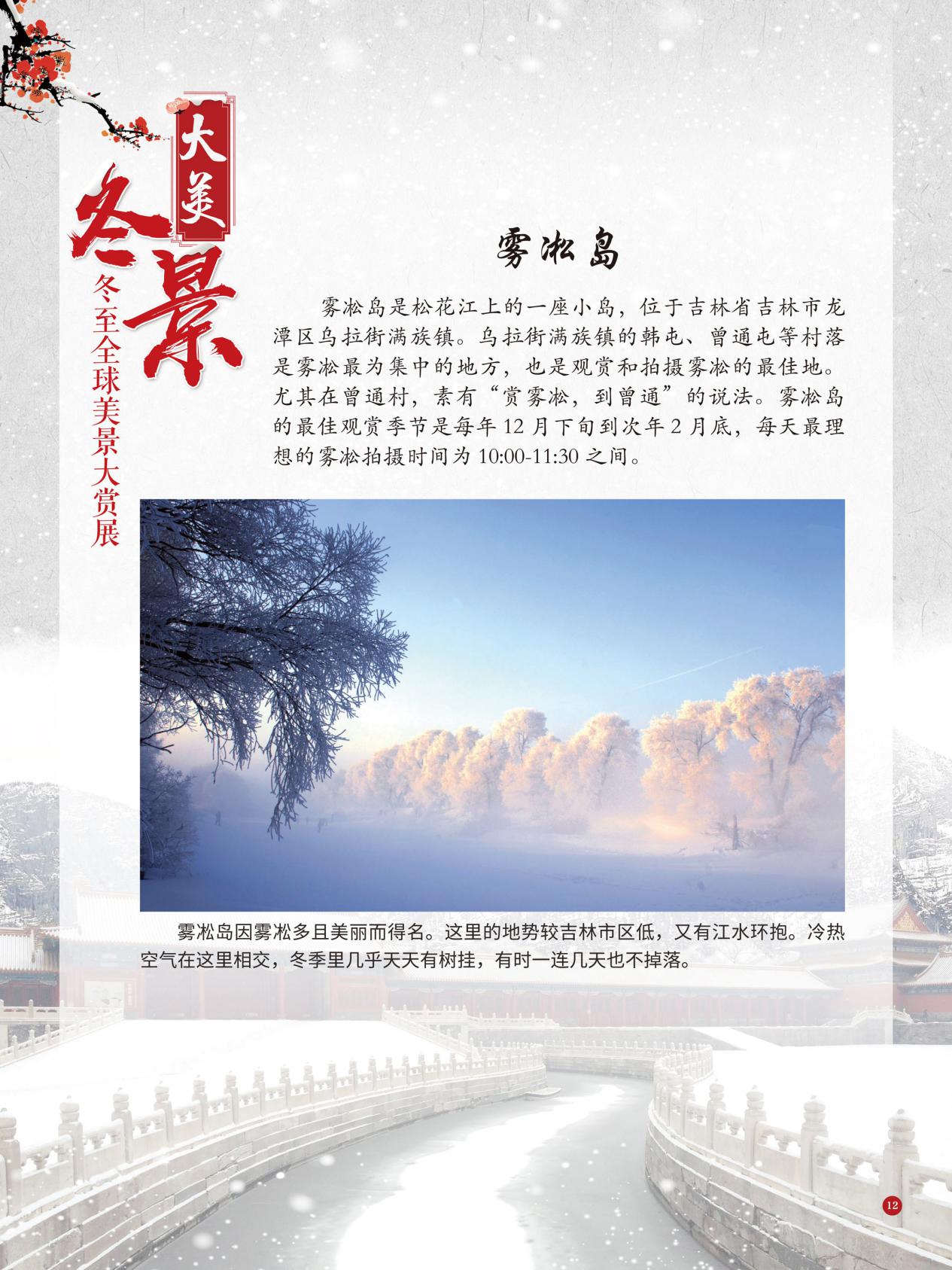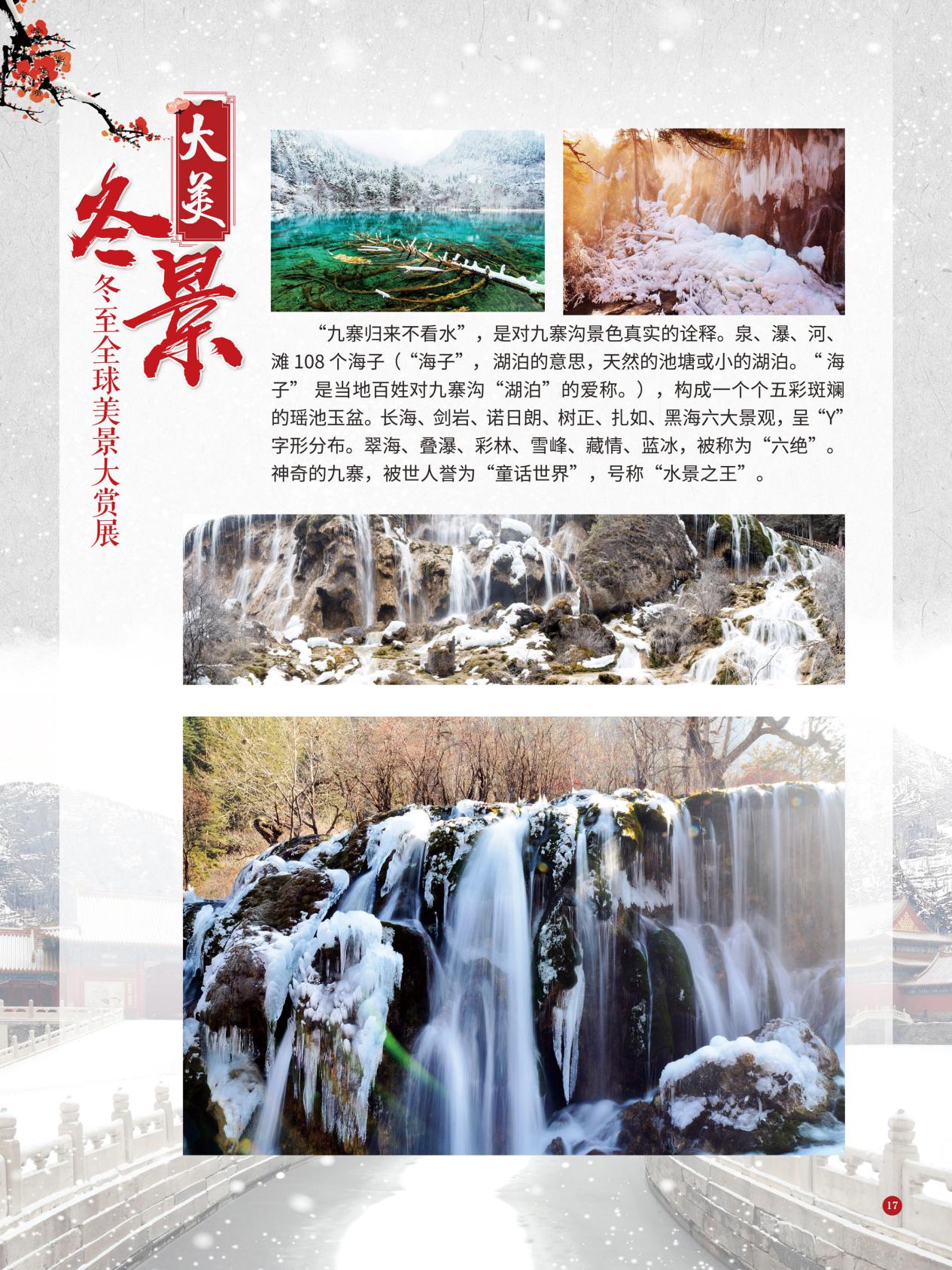冬至是中国民间的传统节日,于每年公历12月21日至23日交节。冬至是四时八节之一,被视为冬季的大节日,在古代民间有“冬至大如年”的讲法,所以古人称冬至为“亚岁”或“小年”。冬至兼具自然与人文两大内涵,是二十四节气中一个重要的节气。 冰雪,是冬天谱写的一曲曲华丽乐章,是毛主席笔下的“北国风光,千里冰封,万里雪飘” ,是杜甫笔下的“窗含西岭千秋雪,门泊东吴万里船”, 是岑参笔下的“忽如一夜春风来,千树万树梨花开”,是柳宗元笔下的“孤舟蓑笠翁,独钓寒江雪”……地域不一样,冬天谱写的冰雪乐章也不一样,即便是同一处冰雪胜景,不同的人品出的也是不一样的味。冬天的美景是大自然的馈赠,本展览主要介绍冬至来临之后全球的冰雪美景奇观,带大家一起领略冬季的风采,探寻大自然的奥秘!