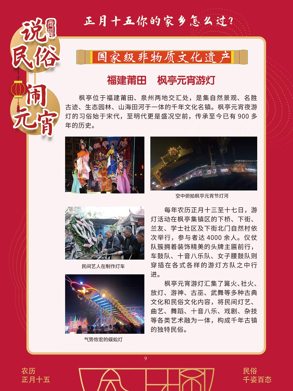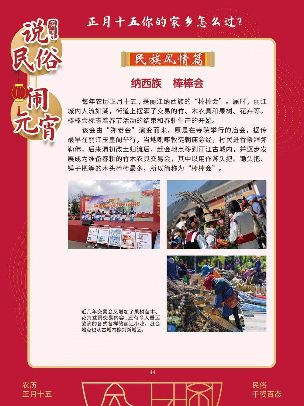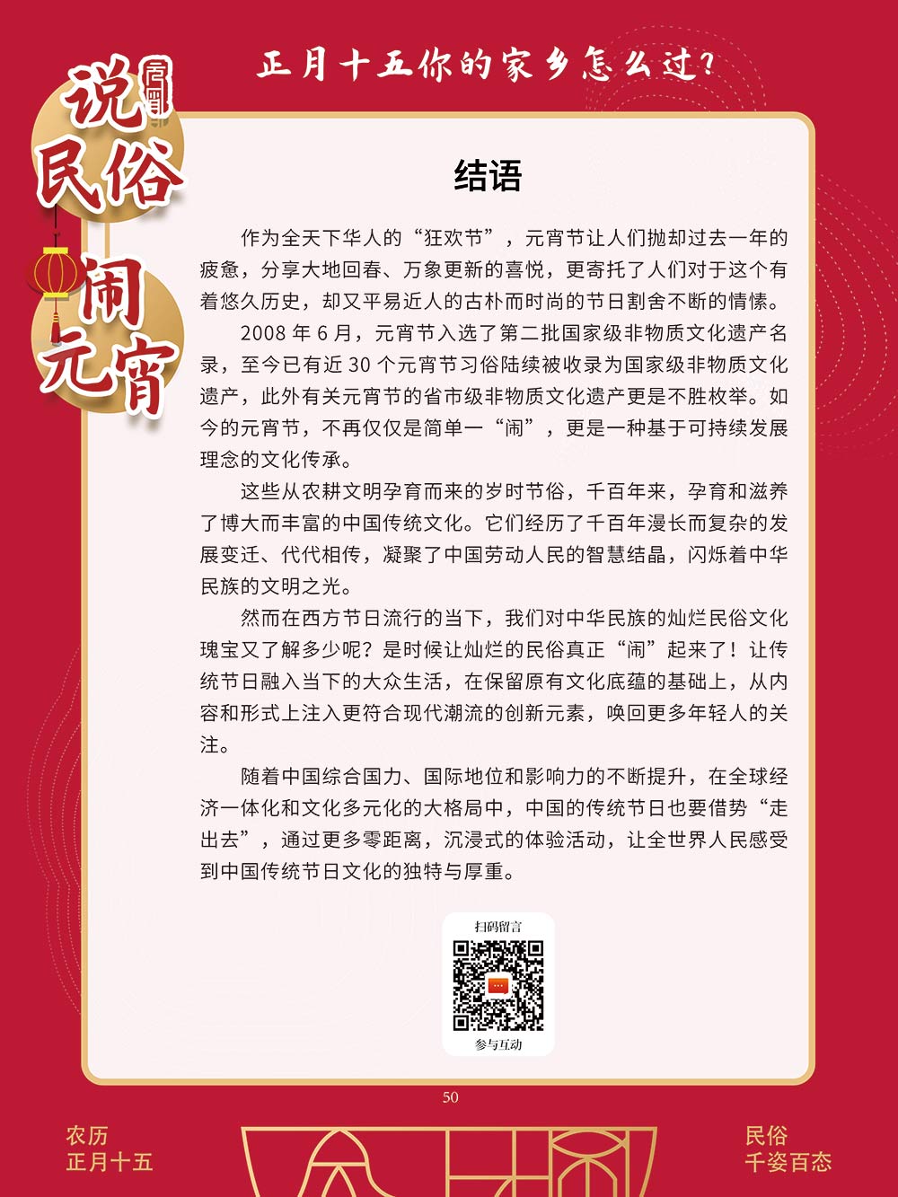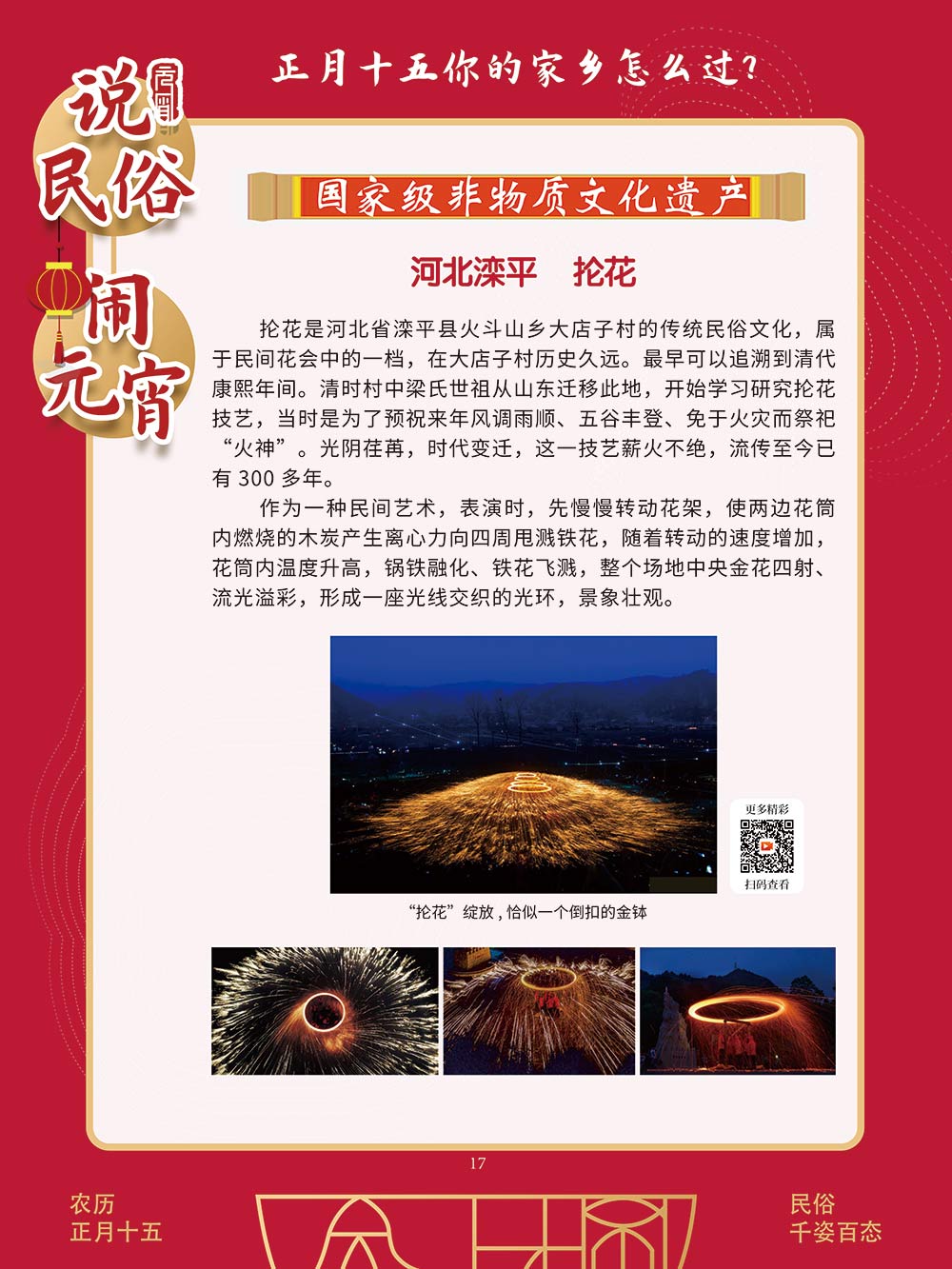 每年的正月十五这一天,赏花灯、猜灯谜、吃元宵、放烟花、耍龙灯、舞狮子、踩高跷、划旱船……这些衍生于汉民族传统习俗的节日活动接连上演,随处可见一派欢天喜地、热闹非凡。然而在幅员辽阔、地广物博的中华大地上,不同的民族和地域也形成了许多独具特色的元宵节习俗,其中很多都已被列为国家级非物质文化遗产。 这些从农耕文明孕育而来的岁时节俗,千百年来,孕育和滋养了博大而丰富的中国传统文化。它们经历了千百年漫长而复杂的发展变迁、代代相传,凝聚了中国劳动人民的智慧结晶,闪烁着中华民族的文明之光。 在西方节日流行的当下,我们对这些中华民族的灿烂民俗文化瑰宝又了解多少呢?是时候让灿烂的民俗真正“闹”起来,让传统节日融入当下的大众生活,在保留原有文化底蕴的基础上,从内容和形式上注入更符合现代潮流的创新元素,唤回年轻人们的关注。 正月十五你的家乡怎么过?不妨借此元宵佳节之际,让我们一起来说民族闹元宵,比一比究竟哪里的年味最浓!