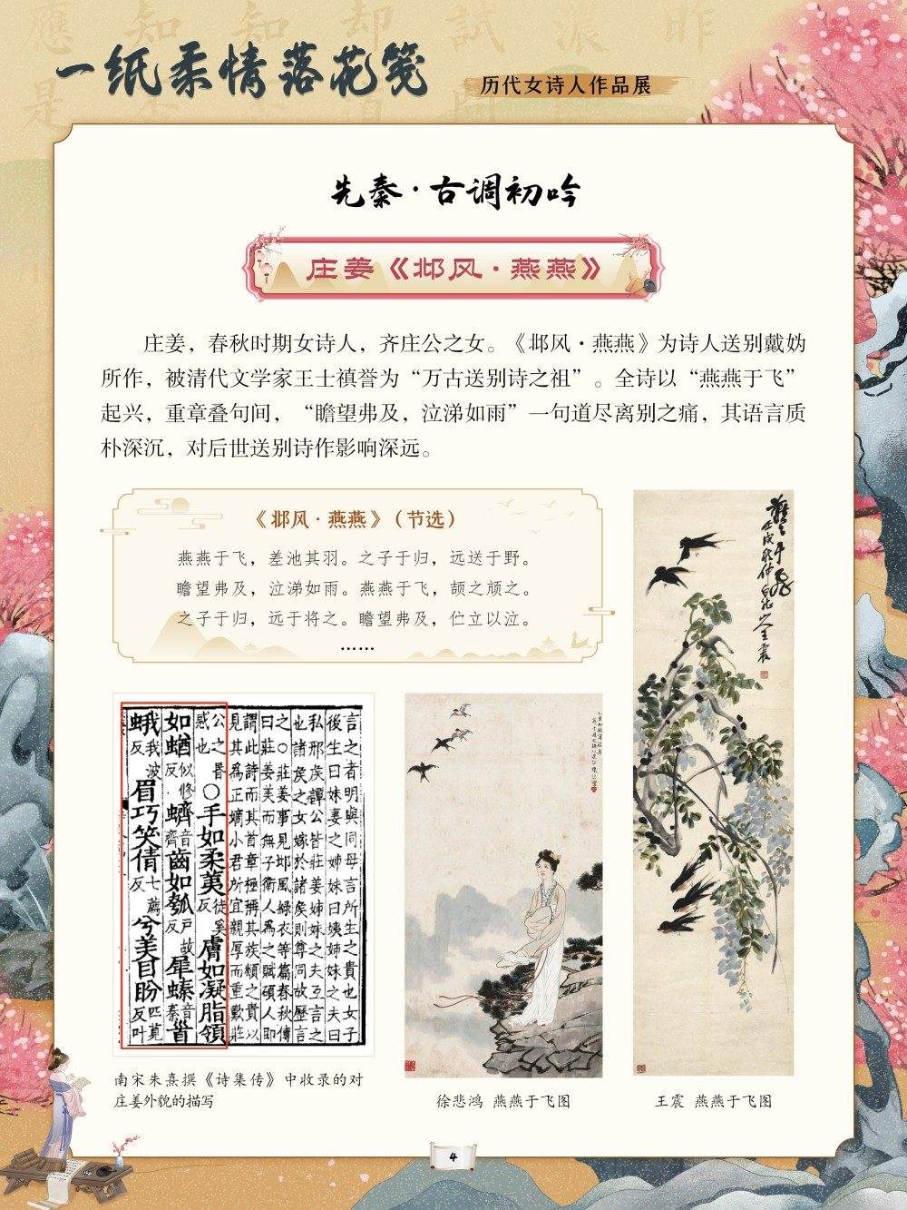 中华优秀传统文化是中华民族的精神命脉,是涵养社会主义核心价值观的重要源泉。在中国文学的璀璨星河中,历代女诗人以独特的生命体验与文学才情,为这条精神命脉注入了温润而坚韧的力量。她们挣脱时代的束缚,以诗为言、以笔为心,将闺阁情思、家国之念与觉醒之志凝于笔墨,书写了中华文脉中不可替代的璀璨华章。 从庄姜“燕燕于飞”的质朴吟唱到薛涛“虚心能自持”的清雅风骨,从李清照“生当作人杰”的铿锵誓言到秋瑾“休言女子非英物”的豪情壮志,每一首诗作都是一段生命轨迹的写照。这些文字或浅吟闺阁闲情,或抒发家国忧思,或呐喊觉醒之志,共同构筑起女性精神世界的璀璨图景。回溯千年诗心,致敬巾帼才情。 值此妇女节来临之际,我们特别策划了“一纸柔情落花笺——历代女诗人作品展”,邀您在“燕燕于飞”的古调与“致橡树”的新声中,读懂她们的才情与坚守,感受中华女性文学的深厚底蕴,让这份流淌千年的诗意,成为滋养当下心灵、坚定文化自信的不竭力量。 展览地点:济宁市图书馆二楼大厅 展览时间:即日起至3月31日